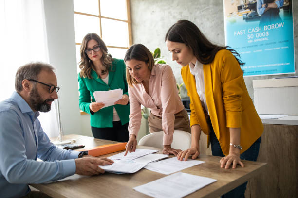 Karyawan berorientasi detail bangga dengan pekerjaan mereka.