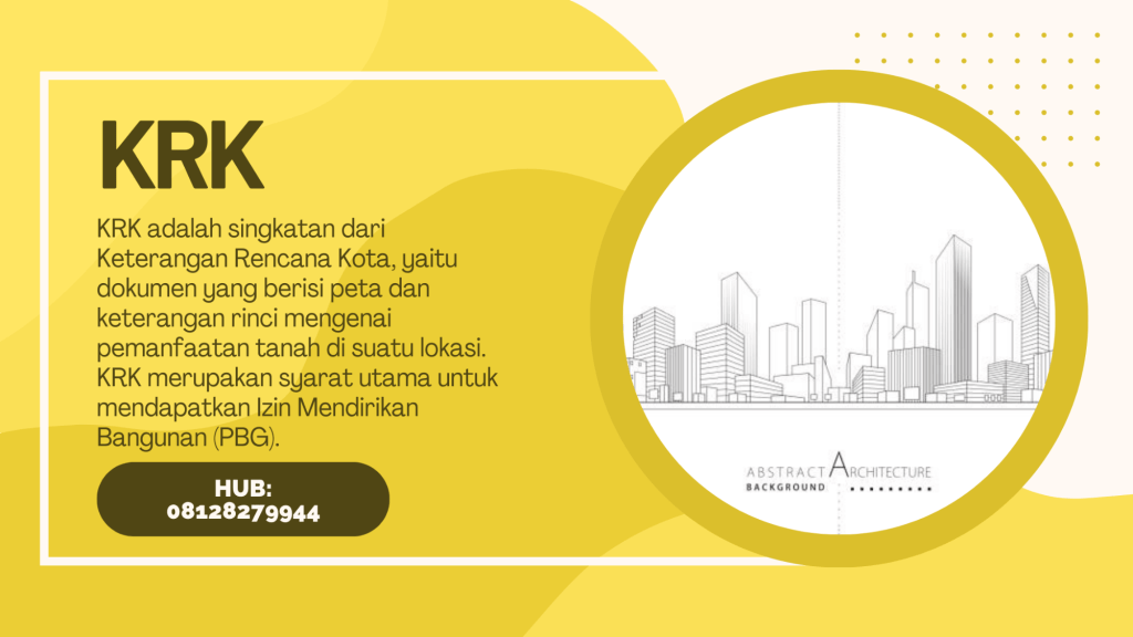KRK adalah kepanjangan dari Surat Keterangan Rencana Kota. Surat KRK ini berisi informasi berupa peruntukan lahan dan penggunaan bangunan, intensitas pemanfaatan ruang, dan beberapa syarat teknis lainnya yang diberlakukan oleh Pemerintah Daerah pada lokasi tertentu. Dokumen ini merupakan persyaratan PBG/IMB atau Izin Mendirikan Bangunan. Selain itu, dengan SKRK, pemohon dapat mengetahui letak bangunan apakah telah sesuai dengan perencanaan kota atau belum.
